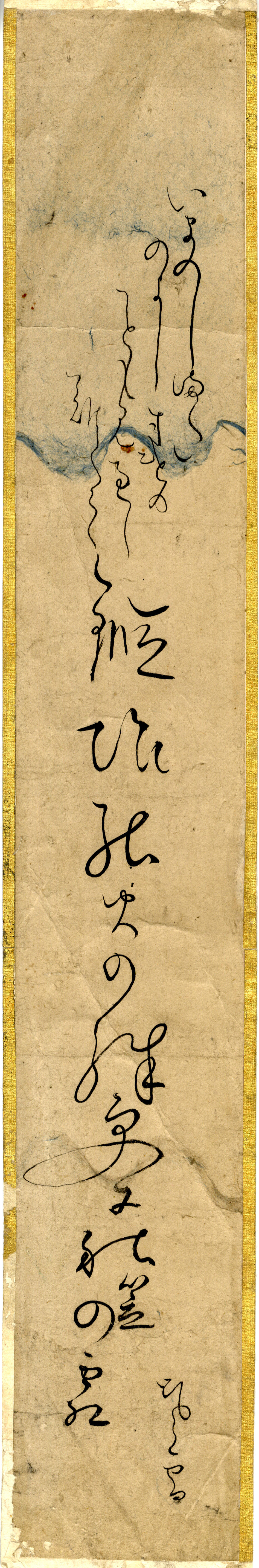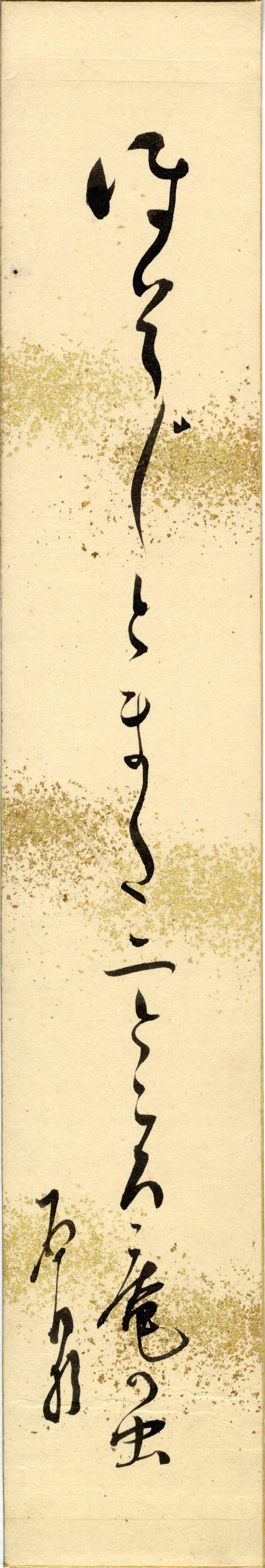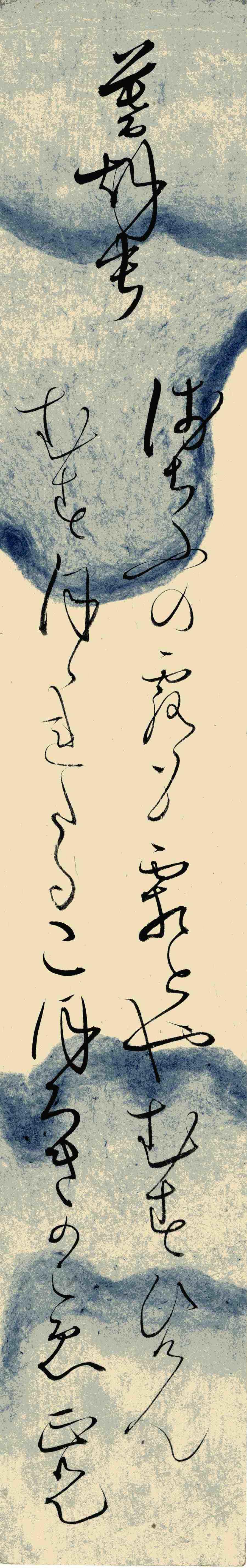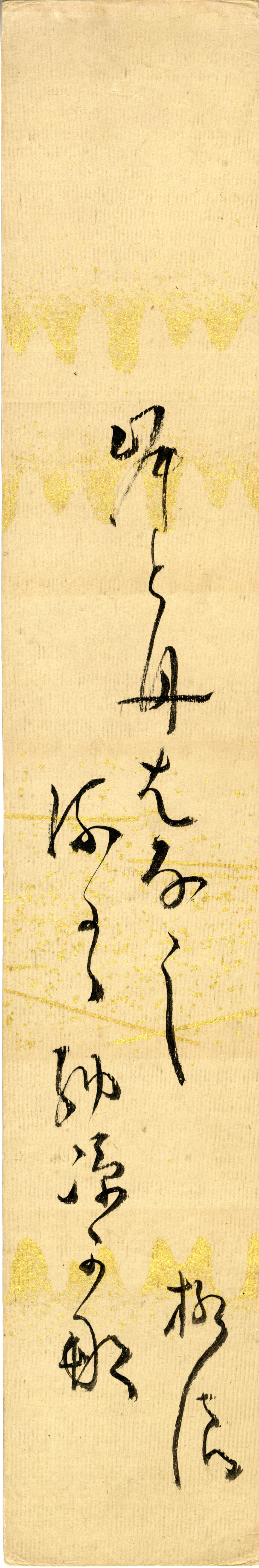 - 短冊 『いまのしまたの よし寸けのことも 見通し難くて 鍛冶の火の 殊更に秋 笠の霜 嵐雪』