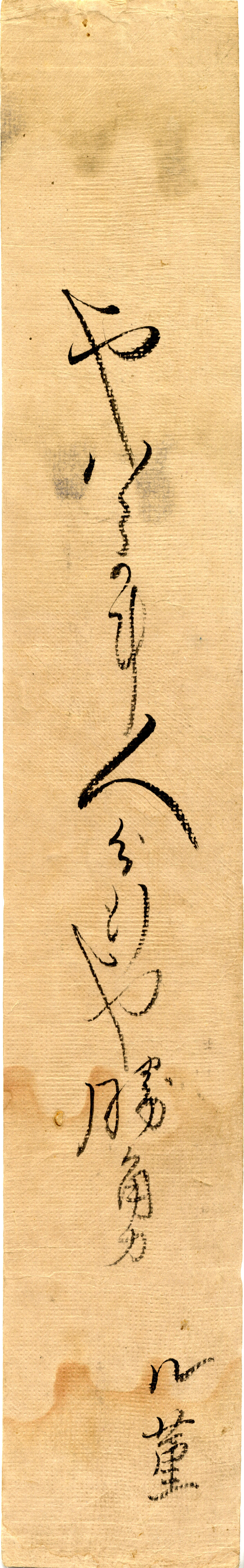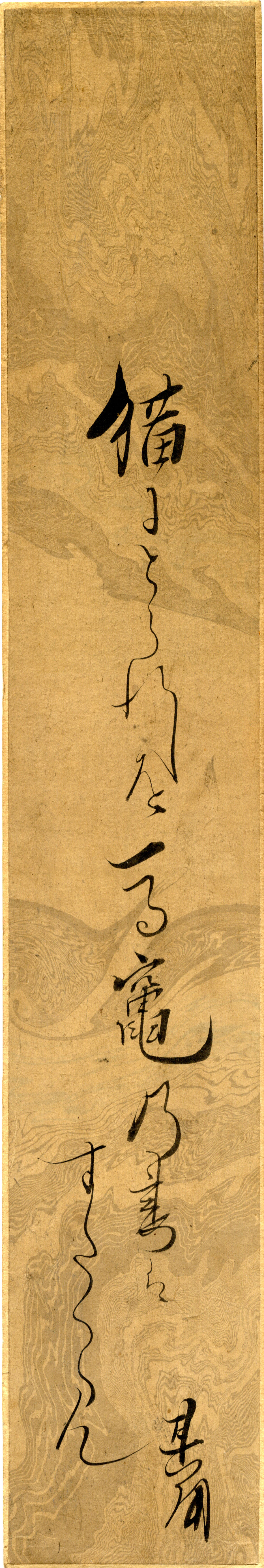 - 短冊 『猫にとられしを 馬竃乃妻はすだくらん 其角』