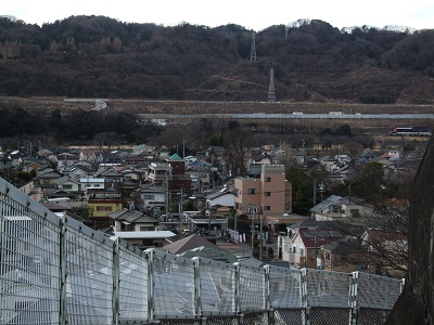 大山街道より見下ろす田名(山の手前に相模川が流れています。) 2017年2月撮影