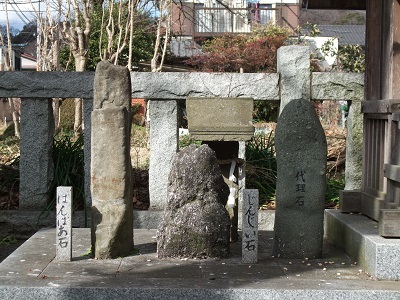 (田名八幡宮境内)左から、ばんばあ石、じんじい石、代理石 2017年2月撮影