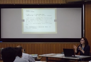 休憩時間を挟み、各分野の事典の紹介をした後は、事典・辞書を利用する利点として、各テーマの分類や項目の構造を知ることができること、解説文の執筆者や参考文献が調査研究を進める上で指標になること等を解説しました。